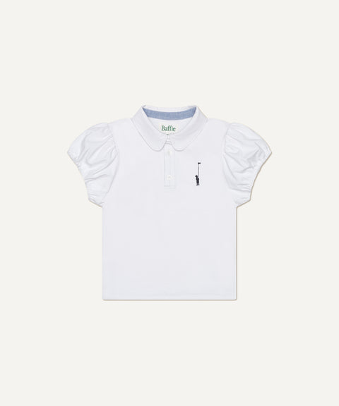 Puff-Sleeved Polo in Green and White Stripe